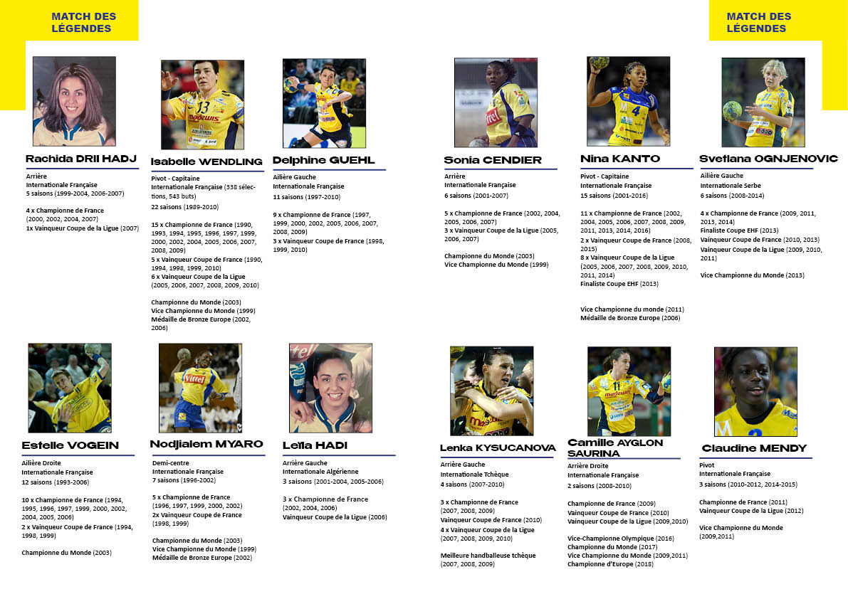 Elle rassemblera 27 légendes Messines : Chantal PHILIPPE, Nathalie MILAIR, Jocelyne BAILLOT, Laurence HEITZ FERNANDES, Maryline MIORI, Sophie LEICK Corinne KRUMBHOLZ, Isabelle BECKER, Irina POPOVA, Sophie HUGARD, Céline LITZENBURGER, Nathalie SELAMBARON, Mélinda SZABO, Rachida DRII HADJ, Isabelle WENDLING, Delphine GUEHL, Estelle VOGEIN, Nodjialem MYARO, Leïla HADI, Sonia CENDIER, Nina KANTO, Svetlana OGNJENOVIC, Lenka KYSUCANOVA, Camille AYGLON SAURINA, Claudine MENDY, Gervaise PIERSON et Ekaterina ANDRYUSHINA.